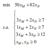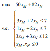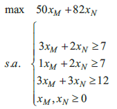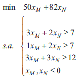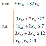 Considerando que as variáveis duais sejam representadas por xM e xN , o problema dual é representado da seguinte forma: