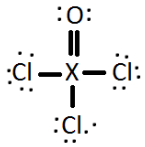 A estrutura de Lewis é desenhada abaixo, sendo que o átomo central é o elemento X.