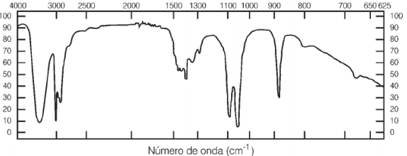 A figura abaixo mostra o espectro infravermelho do álcool etílico (CH3CH2OH).