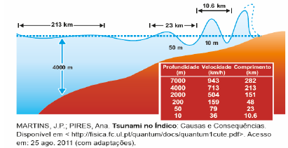 Os tsunamis são causados por terremotos submarinos e acontecem essencialmente nas zonas de fortes movimentos tectônicos, como algumas regiões do Pacífico e da Ásia. O tsunami, nascido do choque sísmico de cima para baixo da massa oceânica, tem várias centenas de metros de espessura e ganha energia toda vez que bate contra o solo submarino. A velocidade de propagação de um tsunami no mar beira os 800 km/h. Massas de água gigantescas baixam em profundidade ao longo das deformações do solo marinho, ao contrário das ondas comuns, que afetam apenas a superfície da água. Durante sua propagação no mar, uma onda perde muito pouca energia. Pode, portanto, percorrer distâncias consideráveis e destruir costas situadas a milhares de quilômetros de seu mecanismo gerador. Como a razão de transferência de energia do tsunami tem que se manter aproximadamente constante, e como a velocidade diminui, a altura da onda tem de aumentar. Devido a este fato, os tsunamis que têm alturas praticamente imperceptíveis em oceano aberto, começam a aumentar de altura quando se aproximam dos continentes, podendo atingir vários metros junto à costa. A maior parte dos tsunamis é gerada devido ao movimento relativo das placas tectônicas em um oceano. Esse movimento origina uma perturbação na superfície livre da água que se propaga em todas as direções para longe do local de geração sob a forma de ondas. Em oceano aberto, onde a profundidade média é de 4 km, os tsunamis têm comprimento de onda da ordem de 200 km e velocidades superiores a 800 km/h dependendo do terremoto. Quando um tsunami atinge a costa, a profundidade do oceano diminui, e, em consequência, a sua velocidade de propagação decresce, assim como seu comprimento de onda. Suponha que se aplica o modelo de ondas rasas, em que a velocidade da onda é proporcional à raiz quadrada da profundidade em que a onda se encontra.