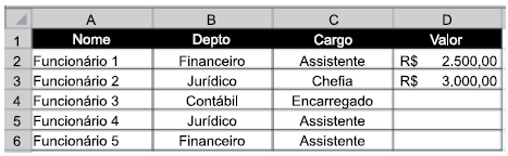 Quando o usuário selecionar a célula D3, pressionar o atalho de teclado Ctrl+C, selecionar as células D4:D6 e pressionar o atalho de telcado Ctrl+V, o valor da célula D5 será