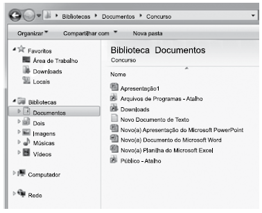 Observe a imagem a seguir, extraída do Windows Explorer do MS-Windows 7, em sua configuração padrão.