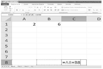 Sabendo que em C8 temos a seguinte fórmula =A8+B8, e que a célula A1 foi arrastada até A8 e que B1 foi arrastado até B8 com o CTRL pressionado. Então o valor de C8 será: