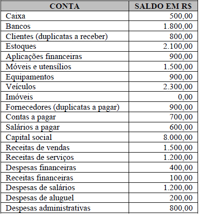 Os saldos apresentados foram extraídos da contabilidade em 31/10/20X1.