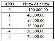 Considere um projeto com investimento inicial de $ 100.000,00 e fluxo de caixa estimado, conforme quadro apresentado.