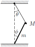 Na figura, a extremidade de uma haste delgada livre, de massa m uniformemente distribuída, apoia-se sem atrito sobre a massa M do pêndulo simples. Considerando o atrito entre a haste e o piso, assinale a razão M/m para que o conjunto permaneça em equilíbrio estático.