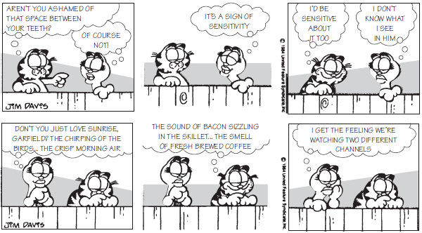 II. Garfield concorda com a afirmação de que dentes separados são indicativos de sensibilidade.