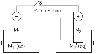 Corrente elétrica flui através do circuito, representado na figura abaixo, quando a chave S é "fechada".
