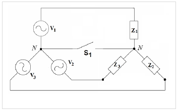 ( ) Se a carga trifásica fosse uma carga equilibrada, não haveria corrente circulando pela chave S_1 quando fechada.