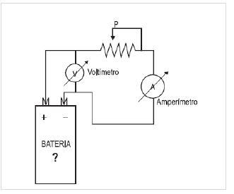 O circuito mostrado na figura ao lado, montado para ensaios de medidas elétricas, serve para identificar a tensão nominal e a resistência interna de uma bateria desconhecida.