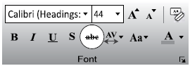 Assinale a alternativa que informa corretamente a ação do ícone abc com um traço no meio, existente na guia Página Inicial, grupo Fonte, no Microsoft PowerPoint 2010, em sua configuração padrão, como destacado na imagem a seguir.