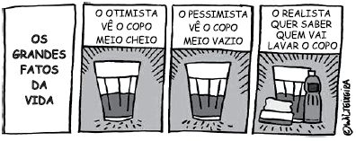 Assinale a alternativa que apresenta afirmação condizente com o que ilustra a tirinha, de acordo com a norma-padrão, com relação às concordâncias verbal e nominal e à pontuação.