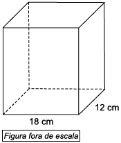 Um recipiente com o formato de um prisma reto de base retangular com 12 cm de largura por 18 cm de comprimento encontra-se vazio, conforme mostra a figura.