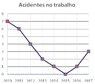 Esse gráfico representa o número de acidentes em uma empresa da construção civil durante os anos de 2010 a 2017. Sobre esse gráfico é