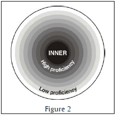 In a globalized world, the traditional definition of ‘second-language user’ (as one who uses the language for communication within his own country) no longer makes sense. Also, there is an increasing need to distinguish between proficiencies in English, rather than a speaker’s bilingual status. Kachru himself has recently proposed (figure 2) that the ‘inner circle’ is now better conceived of as the group of highly proficient 0speakers of English – those who have ‘functional nativenesss’ regardless of how they learned or use the language.