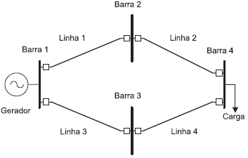 A figura abaixo mostra um sistema composto de um gerador alimentando uma carga a partir de 4 linhas de transmissão.