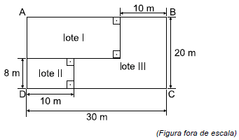 Um terreno retangular ABCD foi dividido em 3 lotes, conforme mostra a figura.