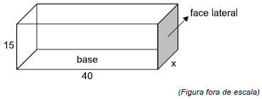 A figura mostra as medidas internas, em centímetros, de uma caixa na forma de um prisma reto de base retangular, com 15 cm de altura.