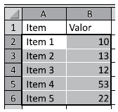 Um usuário do MS-Excel 2010, em sua configuração padrão, elaborou uma planilha com dados, conforme mostra a imagem a seguir.