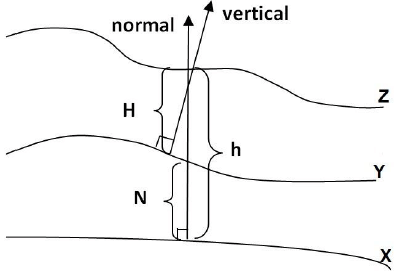 Entre os conceitos importantes na Geodésia, estão os relacionados à distância entre as superfícies da terra, o elipsoide e geoide, que são a altitude ortométrica, altitude geométrica e altura geoidal. Na figura a seguir, as letras X, Y e Z representam, respectivamente, o elipsoide, o geoide e a superfície da Terra, os quais determinam as referidas altitudes e altura representadas pelas letras H, h e N.