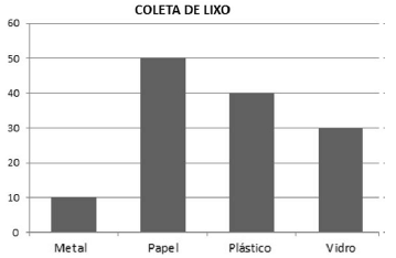 A coleta seletiva de lixo consiste em separá-lo em grupos distintos, segundo a sua classificação. O gráfico a seguir apresenta a quantidade de lixo coletado, em kg, em uma escola de Ensino Fundamental, em Belo Horizonte–MG, no período de uma semana.